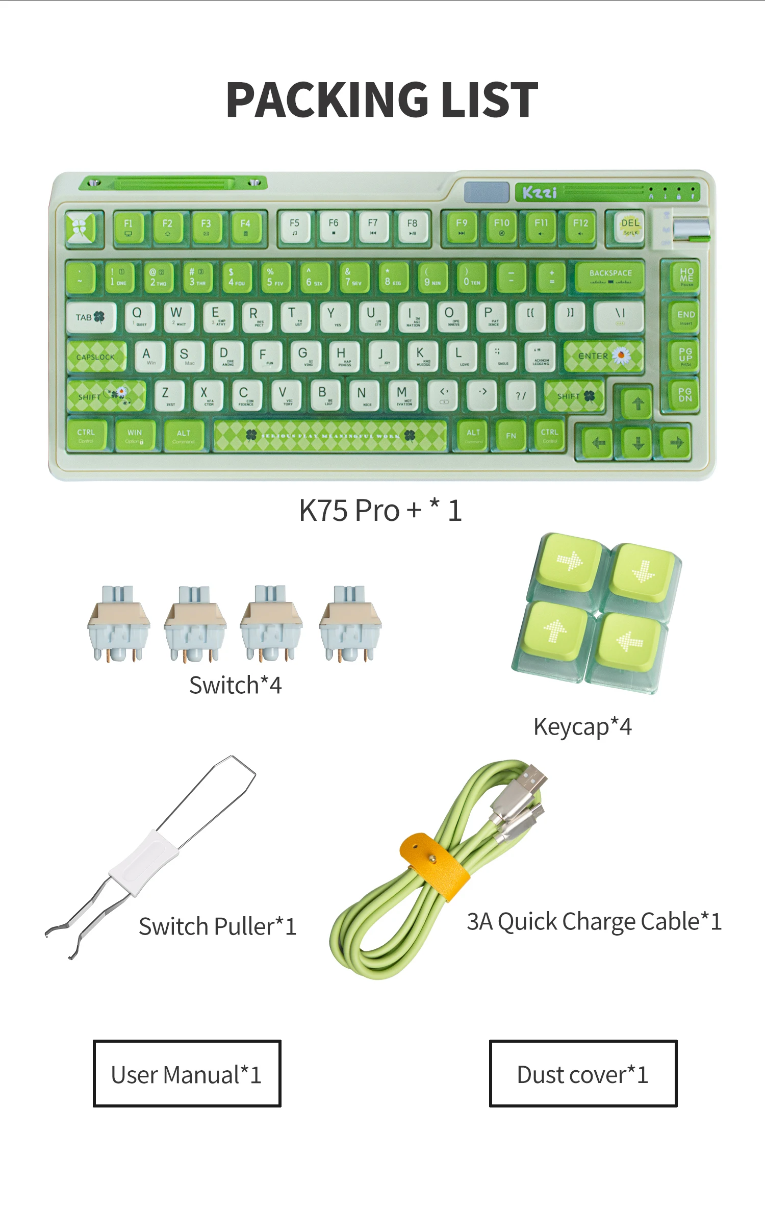 El KZZI K75PRO combina diseño compacto, conectividad avanzada y una experiencia de escritura mecánica premium. Ideal para quienes buscan velocidad, comodidad y estética en un solo dispositivo.