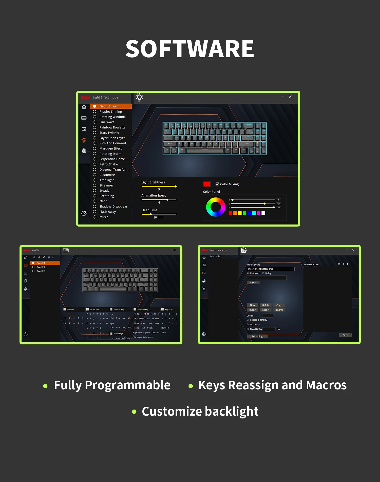 9.DIY Programmable - Software DIY light effect powerful game macros Full-key programmable